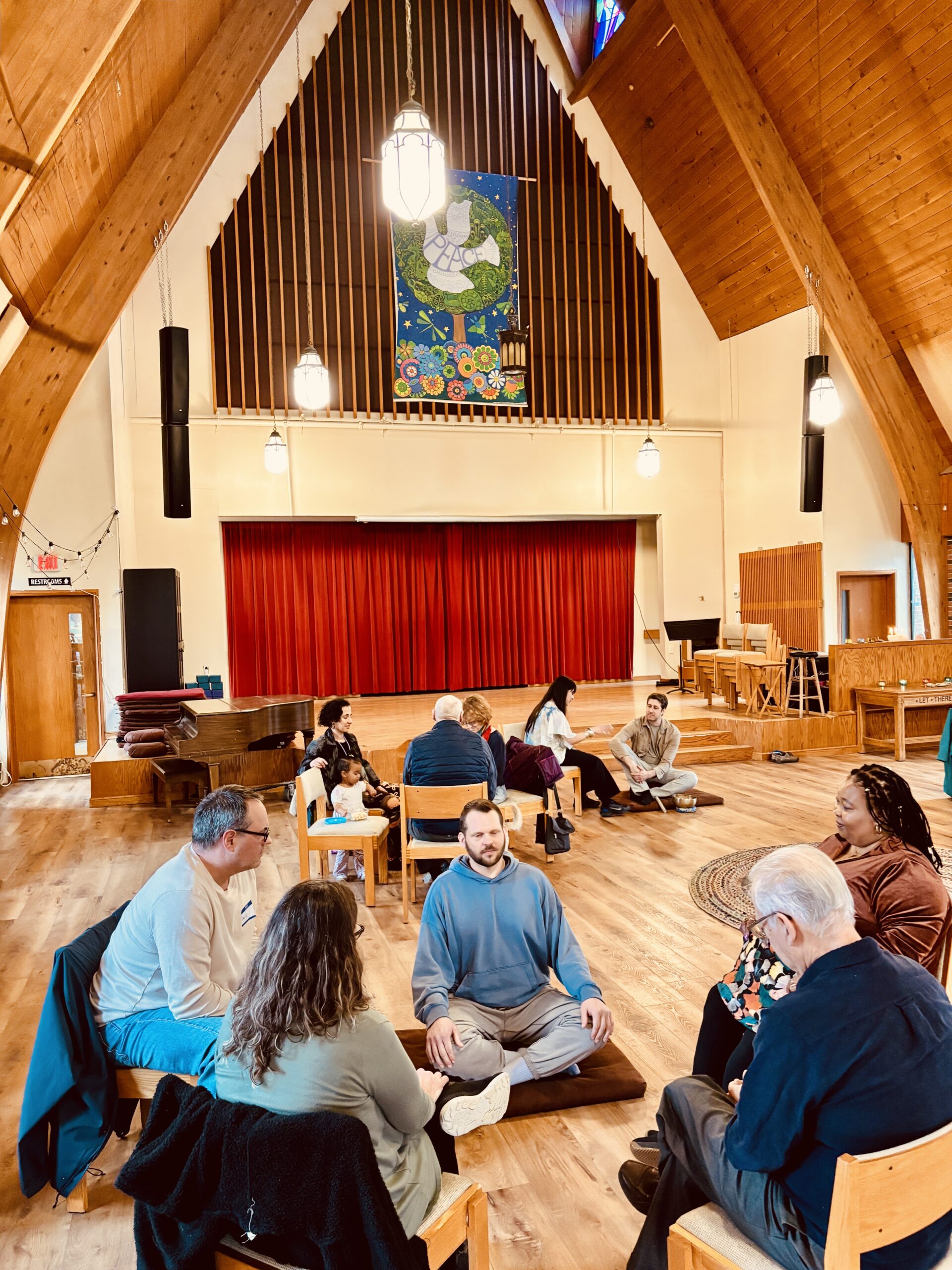 Our community gathers in an Open Circle on Sundays at 10:30am to meditate, pray, sing, and share our truths. The Open Circle is a metaphor for the way our community welcomes people as they are and values each person’s perspectives and gifts.