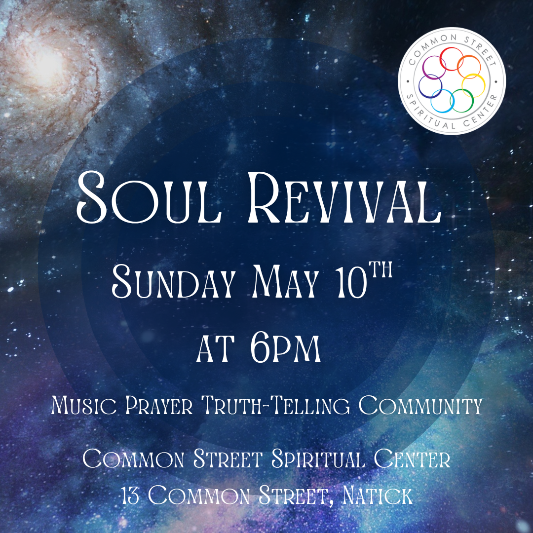 May 10 Soul Revival 6:00 pm - 8:00 pm Common Street Spiritual Center 13 Common Street, Natick Event Details Get Directions
