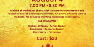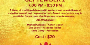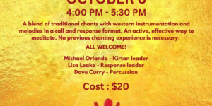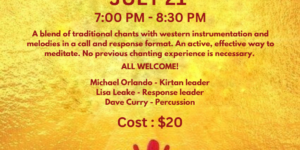 A blend of traditional chants with western instrumentation and melodies in a call and response format. No previous chanting experience is necessary. All are welcome! Michael Orlando is kirtan leader, …