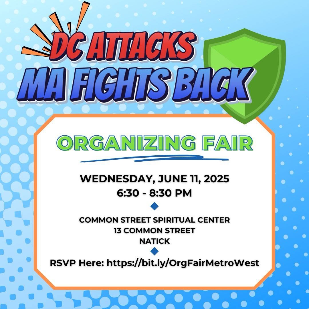 Common Street Spiritual Center 13 Common Street, Natick, United StatesJoin Progressive MetroWest for an evening of community connection and action at our Organizing Fair. This event brings together local grassroots organizations to share their work and inspire civic engagement. ...